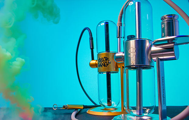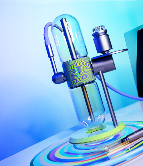 Made with the highest quality materials, including borosilicate glass globes and aircraft-grade anodized aluminum, the Gravity is a complete set that includes an aluminum bowl kit and a glass liner that also connects to any smoking or vaporization device with a 14mm male joint. The Kompact includes a 3-foot silicone hose that can be connected to the 45° adjustable mouthpiece for direct draws.